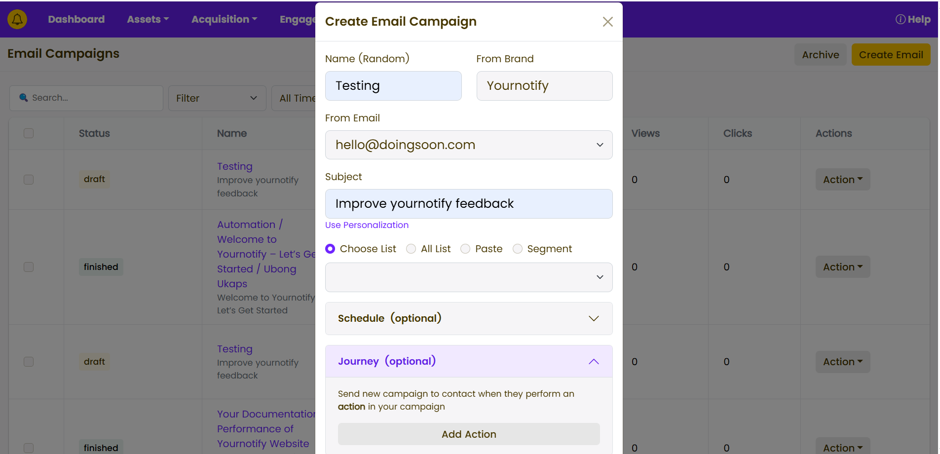 After creating the campaign journey, you can track the steps your audience took after receiving an email campaign. By analyzing this data you can efficiently nurture leads and build stronger relationships with your audience.