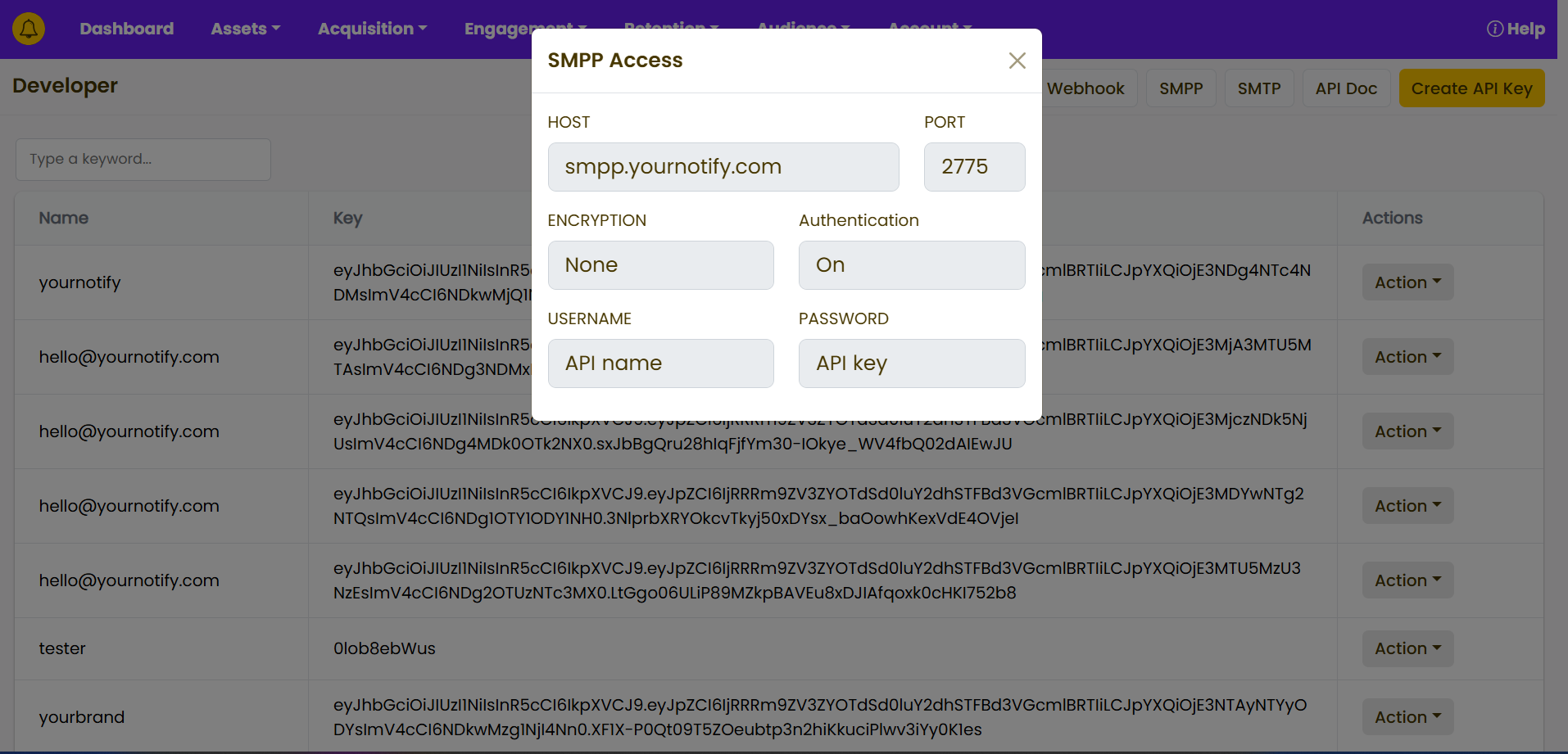 To connect to Yournotify’s SMPP server, use the following configuration details: