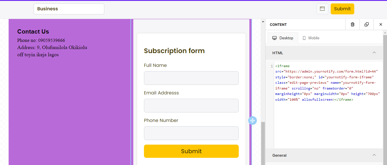 Creating a dedicated page serves as your digital hub, offering a one-stop destination for your audience to explore all that your business has to offer. Your page serves as your central hub for driving traffic, highlighting your latest promotions, and presenting your social media presence. Yournotify provides several options to attract subscribers to your page using our embedded form link. Here is a guide on how to add a form to a landing page on yournotify.